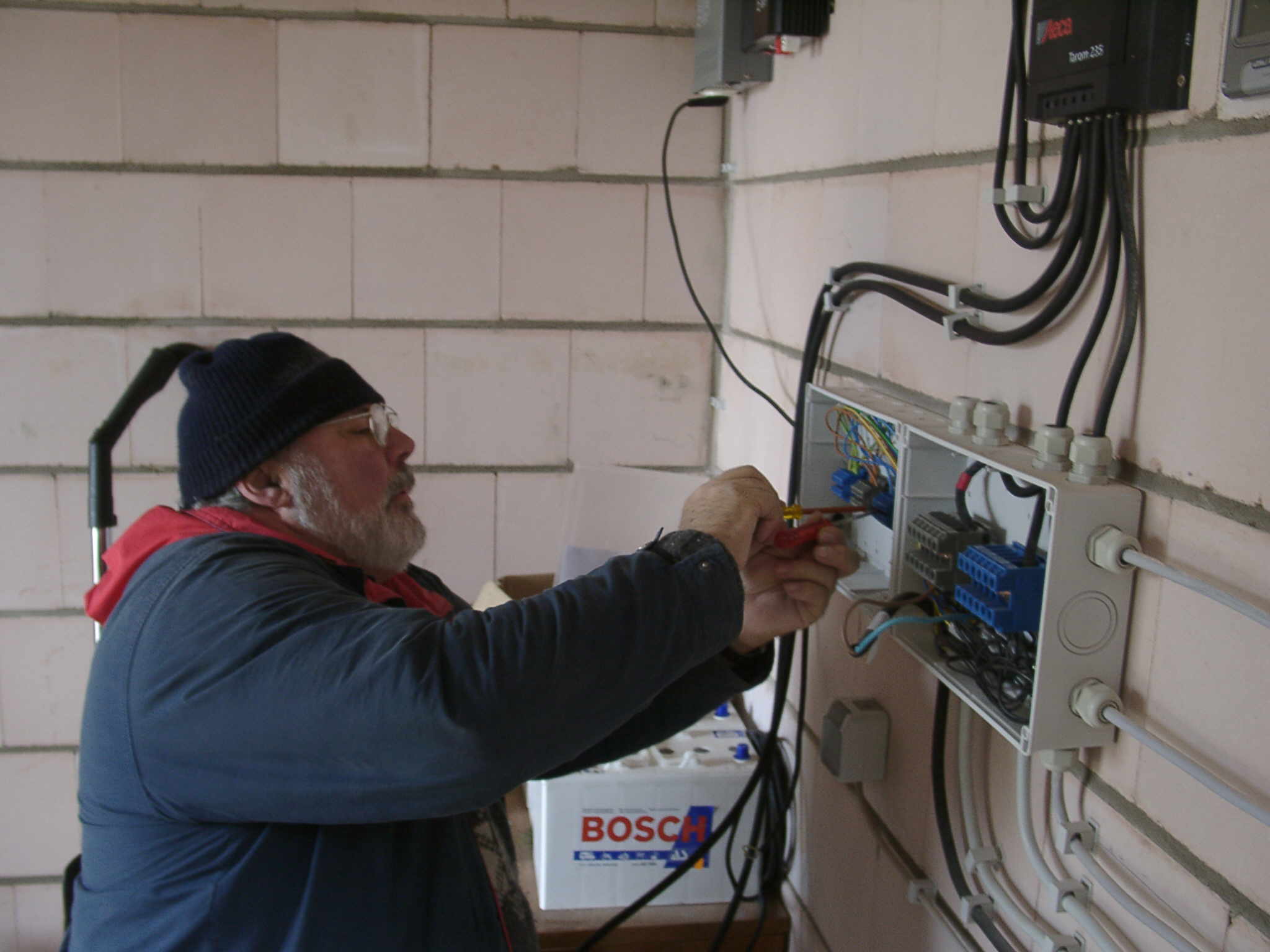 Mit dem Rat des Solarvereins Trier konzipierten wir eine Anlage, die den erforderlichen Strom liefert. Sie ist allerdings nicht ganz billig, denn die Sonnenscheintage in Trier sind nicht so häufig, dass immer genügend Energie bereitsteht. Da wir die Energie immer nachts brauchen, müssen wir sie speichern und gute Speicher sind teuer.