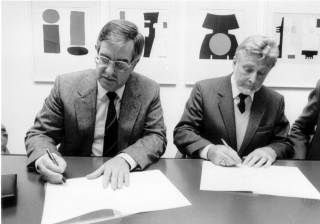 Am 3. 9. 1986 konnte der Vertrag in Gegenwart der Vizepräsidenten Prof. Dr. Jörg Hasler, Prof. Dr. Hans Braun, des Kanzlers Ignaz Bender, des Diplomgeologen Wolfgang Wagner, sowie des Vorstandes des Vereins Sternwarte Trier durch den Universitätspräsidenten Prof. Arnd Morkel und den Vorsitzenden des Vereins, Studiendirektor a. D. Alfred Wagner unterzeichnet werden.